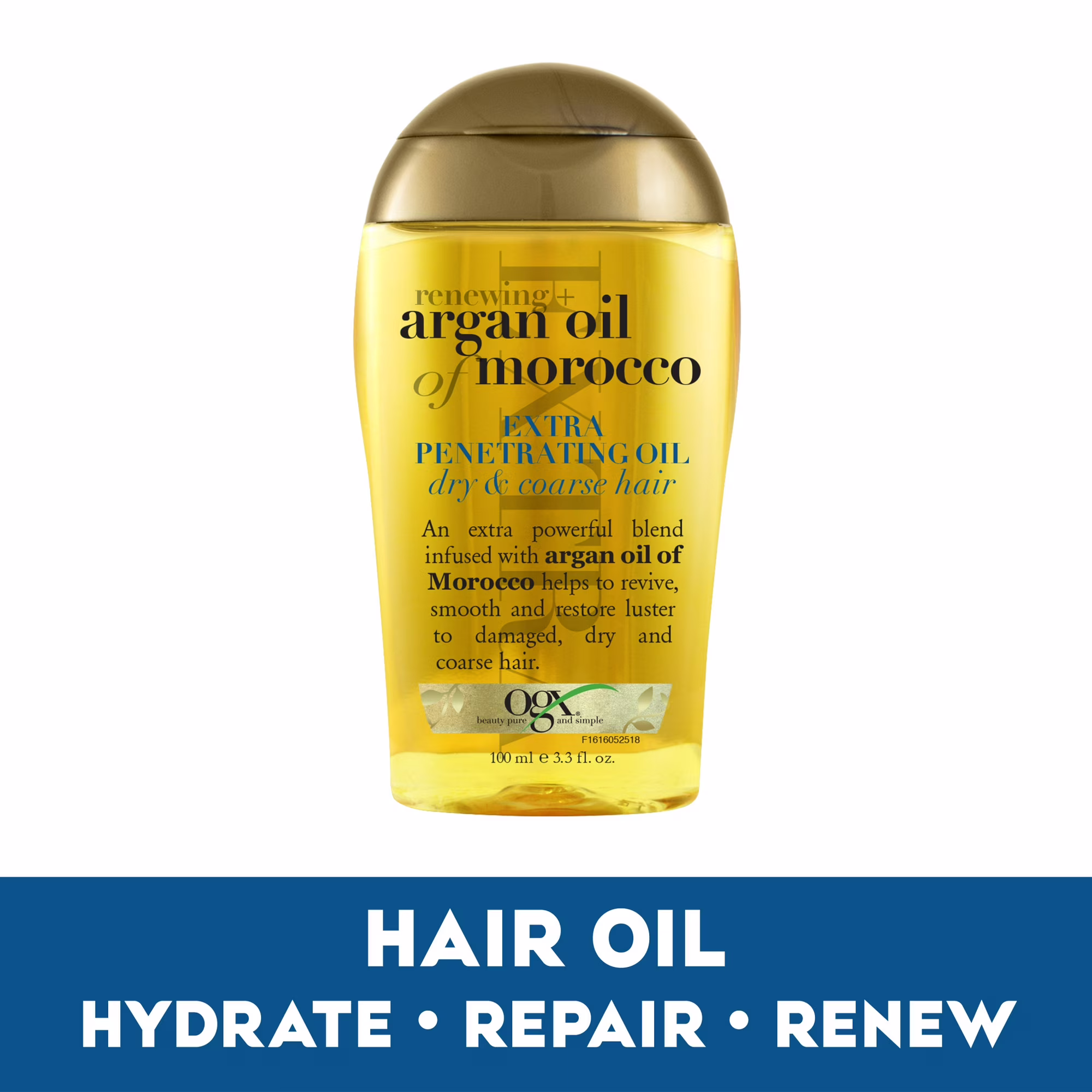 Moisturize and repair dry, damaged & coarse hair with OGX Extra Strength Argan Oil of Morocco Penetrating Hair Oil Treatment. Ideal for medium to coarse-textured hair, the rich hair serum helps penetrate the hair shaft while renewing & softening hair. Formulated with an extra-hydrating blend of water-based silk proteins & rich cold-pressed Moroccan argan oil, it helps revive dry & damaged hair to leave it looking silky smooth. Nourishing hair oil serum seals in nutrients and shine to help improve hair strength & elasticity,for touchable tresses that are soft but strong. Plus, the citrus-fresh, floral-green & woody scent leaves locks with an irresistibly good smell. Paraben-free without sulfated-surfactants, this moisturizing hair serum is gentle enough to give coarse locks a radiant shine from the inside out.