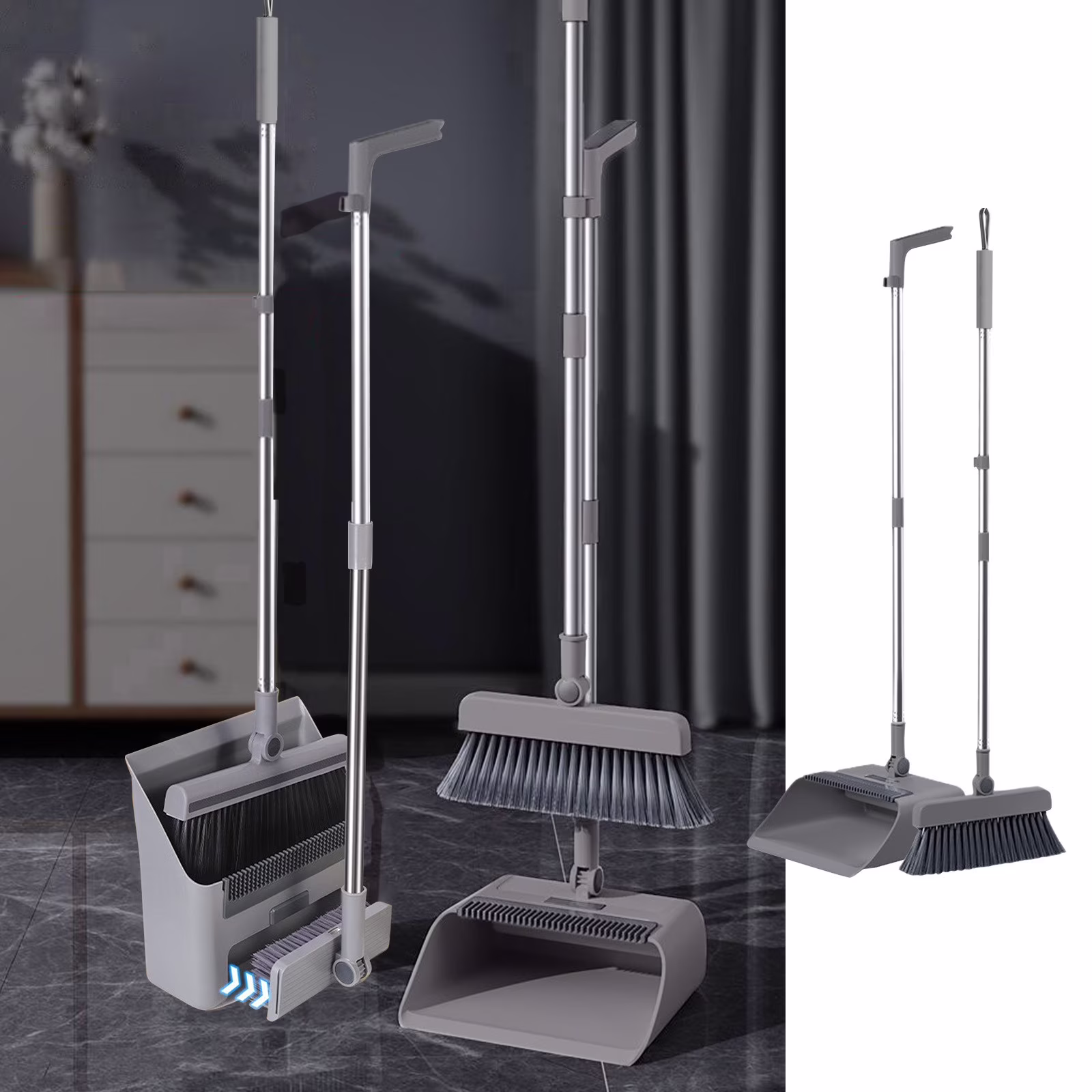 The Household brooms and Dustpan Set comes with a 33-inch long-handled brooms that allows you to sweep comfortably without bending over. With a hidden floor brush, you can change the dustpan brush as you like.The brooms and dustpan set , you can place the brooms and dustpan up right in the gaps of washing machines, refrigerators, cabinets, and other furniture. It is very space-saving, nice, and concealed. Suitable for living room, kitchen, garden, office, etc.The widened brooms head is made of and heavy-duty 3-layer bristles and is suitable for cleaning large areas and corners. The brooms head can be rotated 180°, making it easier to go into the bottom of furniture and corners to capture dustiness and dirt, saving you.The built-in combs of the dustpan can easily scrape the pet hair and human hair the brooms into the dustpan without manual cleaning. The lip of the dustpan fits seamlessly with the ground, sweeping the floor without leaking dustiness.Each brooms and dustpan set is made with materials. It will be a good helper for you and your family to clean home hygiene.